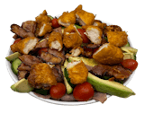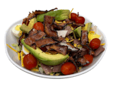 Our fresh greens topped with crispy chicken, bacon, roast beef, grape tomatoes, cucumbers, and fresh-sliced avocado. A satisfying blend of flavors and textures for a hearty and delicious salad option.